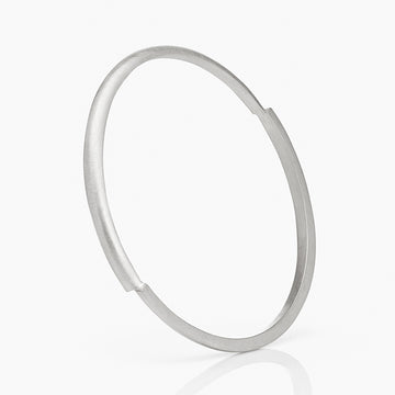Defined by a fluid yet distinctive shape, this fine-weighted bangle features an off-set join that creates a modern elegance through geometric juxtaposition. Handcrafted from sterling silver with a beautiful brushed matte finish, it’s complemented perfectly by matching earrings. Hallmarked and also available in sterling silver with 18ct gold plate.