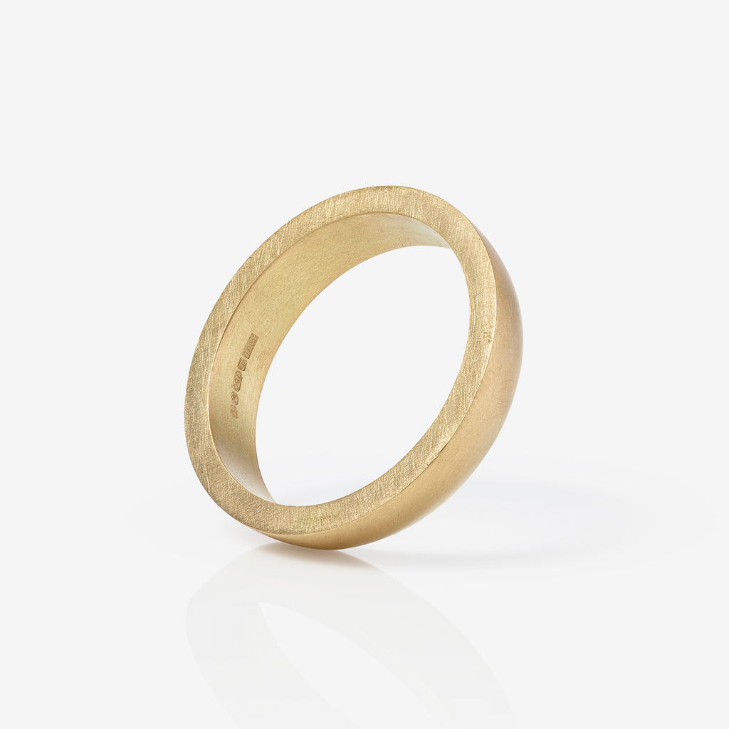 Confident and sculptural, this contemporary ring is crafted from 18ct yellow gold. Available in our signature brushed matte finish, it's hallmarked and also available in white or rose gold.