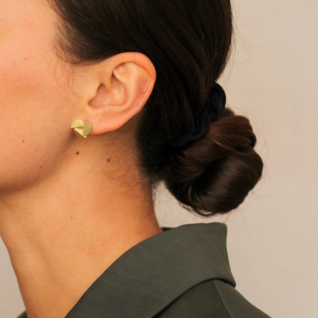 Make a statement with these elegant, medium-sized studs. Sculptural in style and handcrafted from 18ct yellow gold with a brushed matte finish. They’re complemented beautifully by matching pendant. Hallmarked and also available in white and rose gold.