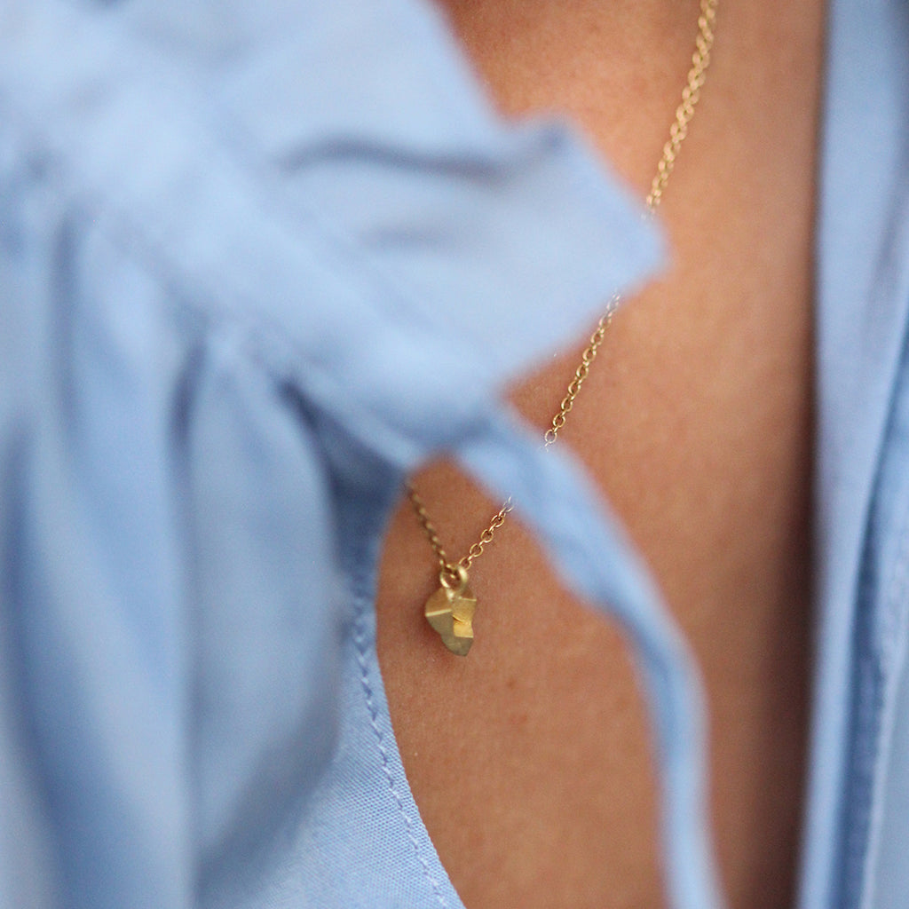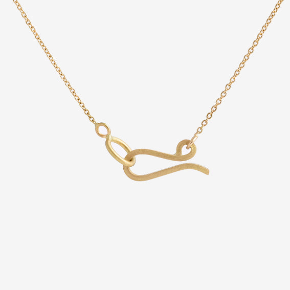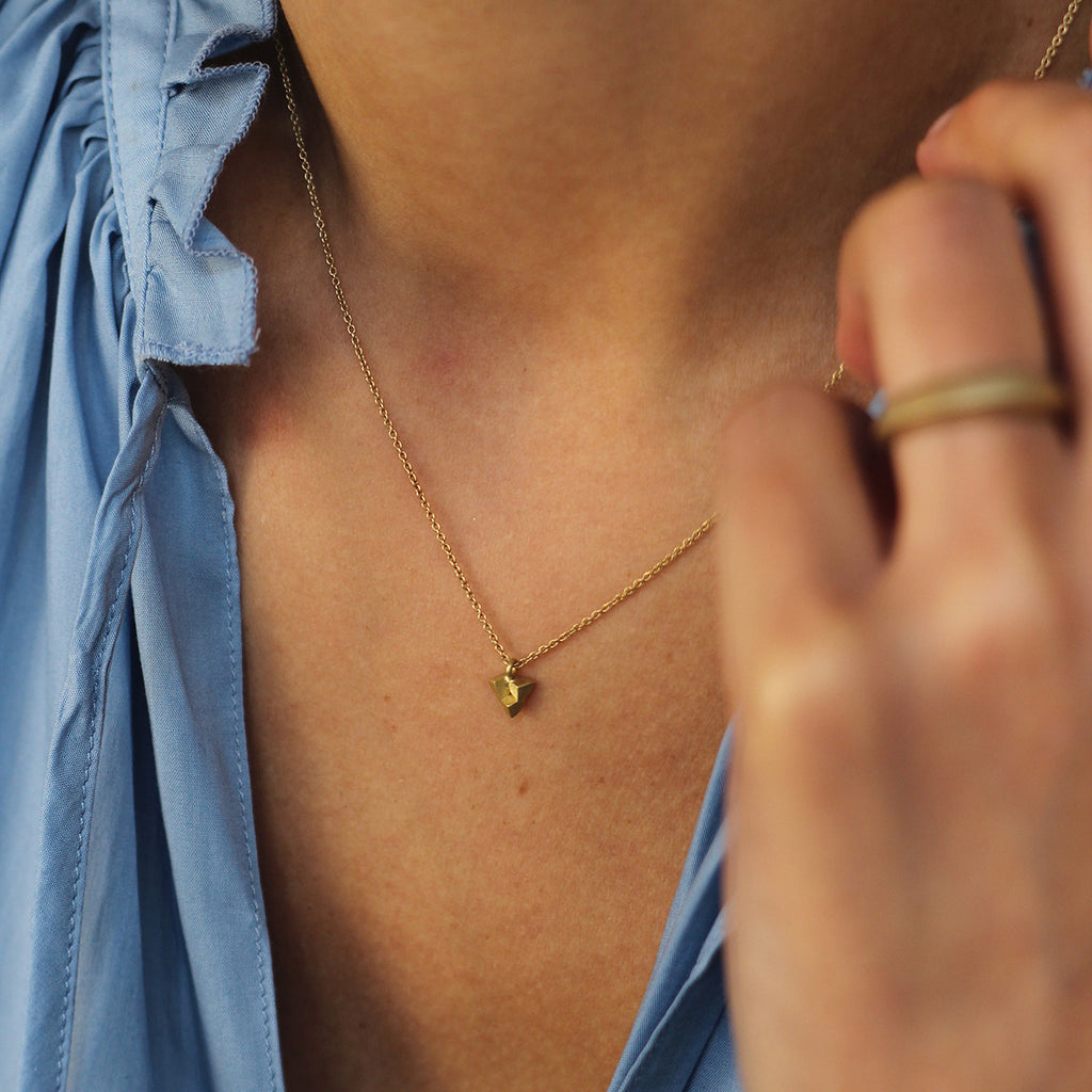 Elegantly geometric, this delicately minimalist pendant is perfect for everyday. Crafted from 18ct yellow gold, it features a handmade clasp and hallmark. Also available to order in 18ct white gold. Shown on model in 16”.