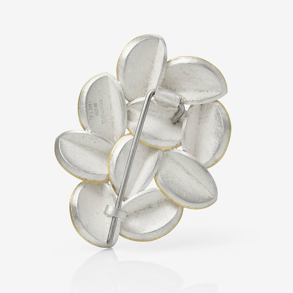 Elegantly subtle while strikingly beautiful, this one-off, architectural brooch has 18ct yellow gold applied to every silver element. With a stainless steel clasp, the brooch is held firmly and securely on your clothing, featuring a mixed metal hallmark and finished in signature brushed matte.