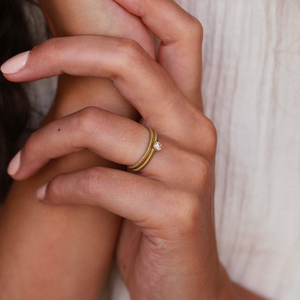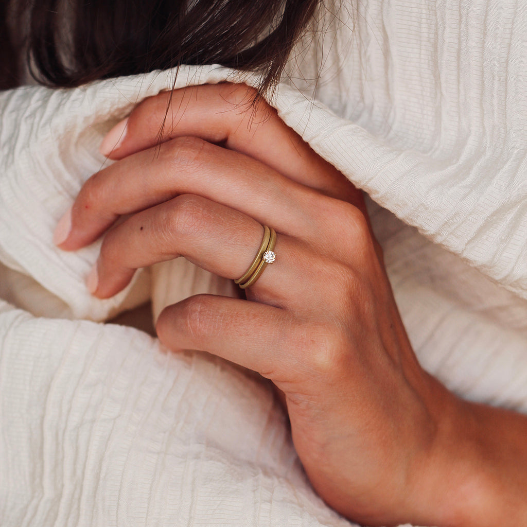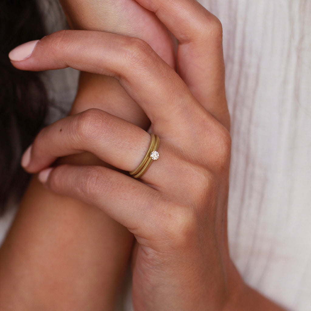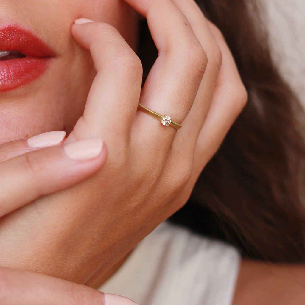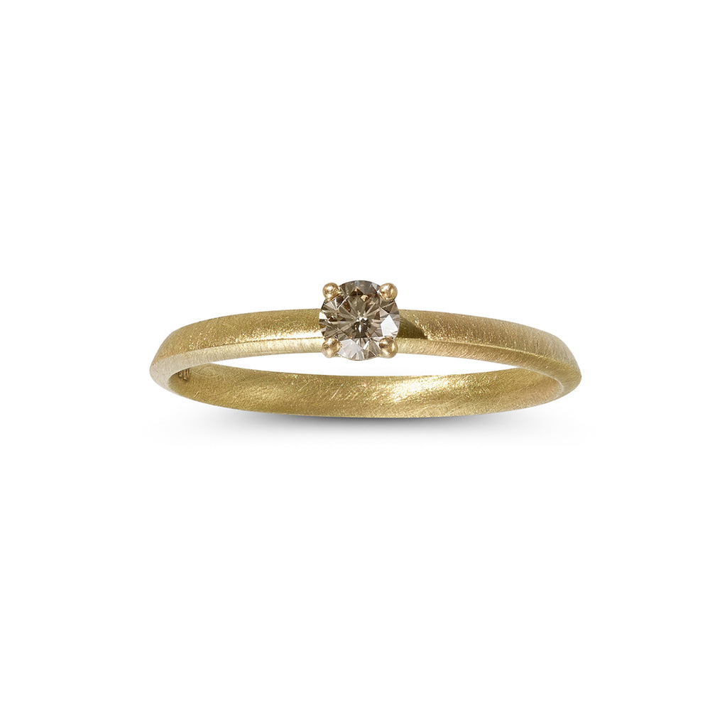 This modern, contemporary engagement ring showcases a beautiful Champagne diamond. Featuring a four-claw setting, it's crafted from 18ct yellow gold. It's available in our signature brushed matte finish and is hallmarked by the London Assay Office. It can be paired perfectly with our 2mm Signature Ring as a complementary wedding band. This ring is part of our Engagement Ring Collection.