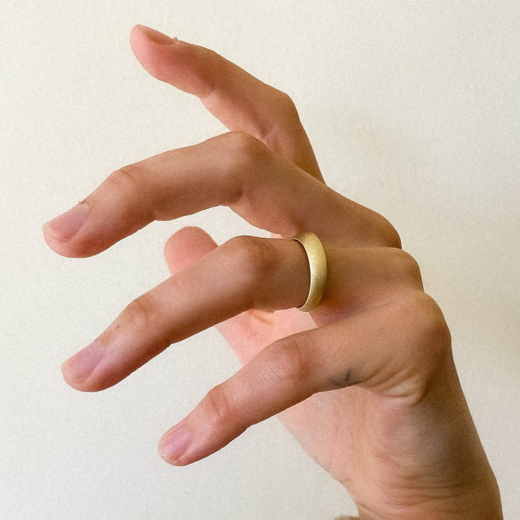 Effortlessly understated, our tapered signature ring is crafted from 9ct yellow gold, and is designed for both women and men. Available in both 9ct and 18ct gold, it features our signature brushed matte finish and hallmark. This ring is part of our wedding and engagement ring collection.