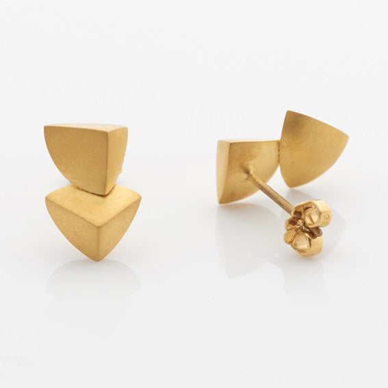 Accentuated by angular simplicity, these simple and elegant earrings are handcrafted from sterling silver with 18ct gold plate. In a beautiful brushed matte finish, they’re complemented perfectly by matching ring and pendant. Also available in silver.