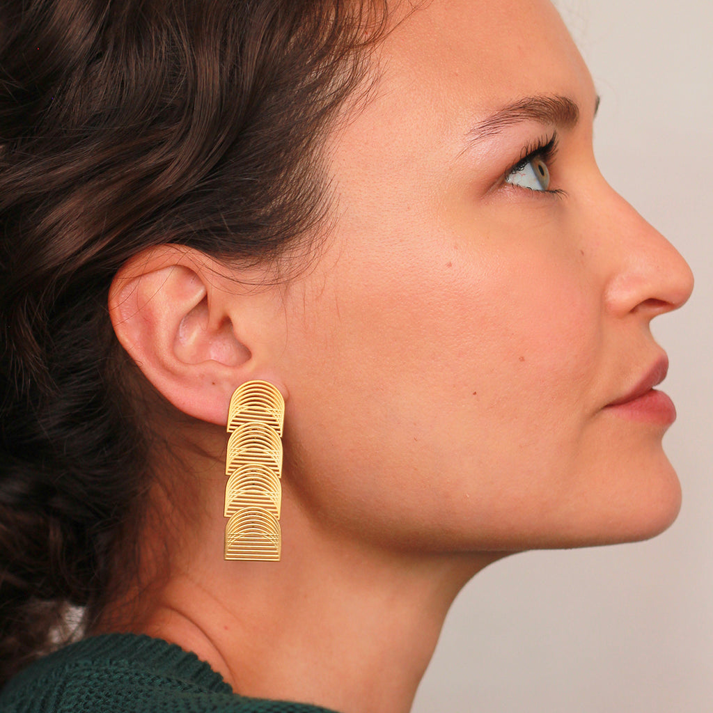 Bold and graphic, these contemporary statement earrings are crafted from sterling silver with 18ct gold plate. They feature our signature brushed matte finish, are hallmarked and are also available to order in silver.
