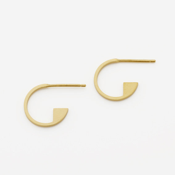 Graphical by design, these small hoop earrings are made for everyday elegance. They’re complemented perfectly by matching pendant and ring, handcrafted from sterling silver with 18ct gold plate in a beautiful brushed matte finish. Also available in sterling silver.