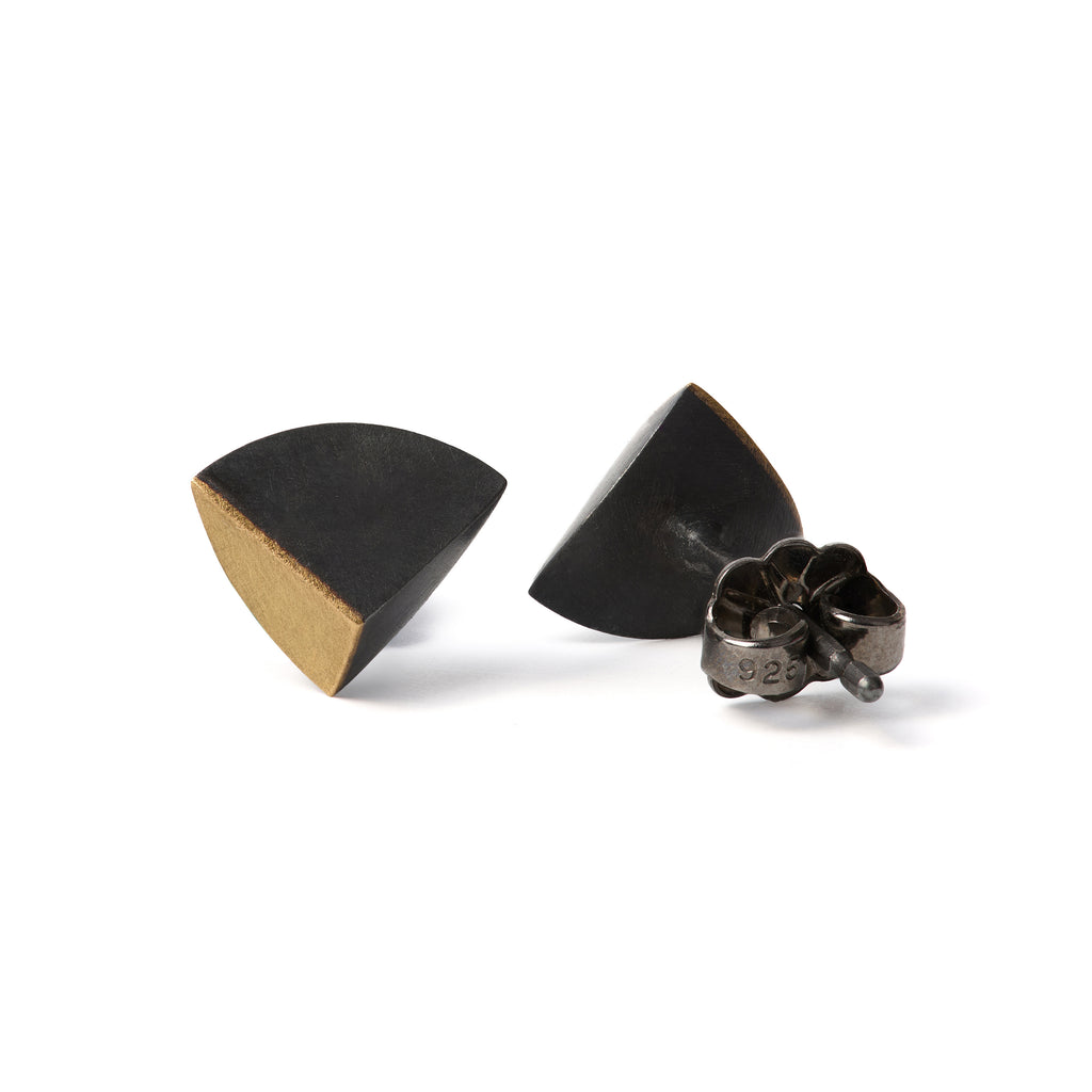 With sharp lines and soft curves, these simple stud earrings are handcrafted from oxidised sterling silver and 18ct yellow gold. These are a re-design of our original Billie earrings, which were made from gold-plated silver and filled with black resin.