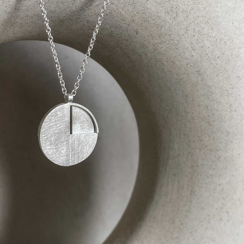 This simple and contemporary pendant is crafted from sterling silver with our signature brushed matte finish. Hallmarked and featuring a handmade T-Bar clasp, it's complemented perfectly by matching earrings. Also available in sterling silver with 18ct gold plate.